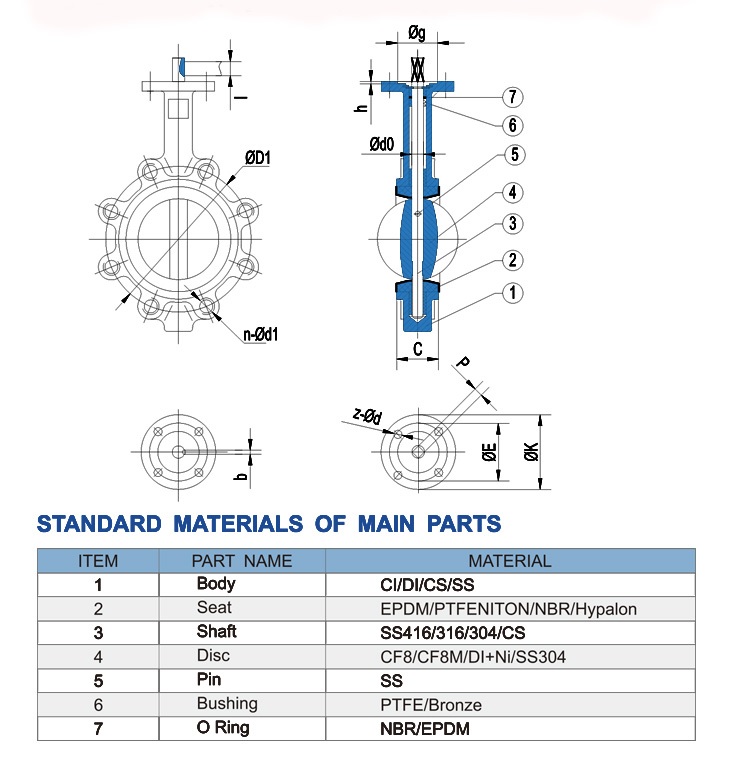 • Khoảng cách mặt bích (Face to Face): API609, BS5155, DIN3202, ISO5752