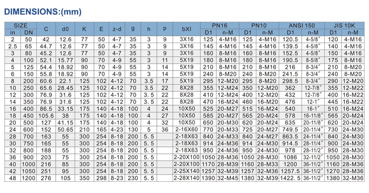 • Tiêu chuẩn mặt bích: DIN, BS, UNI, ISO, ANSI, AS, JIS